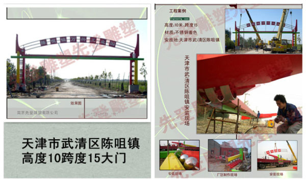 成功案例:該不銹鋼雕塑安裝于天津市武清區陳咀鎮,高度10米。